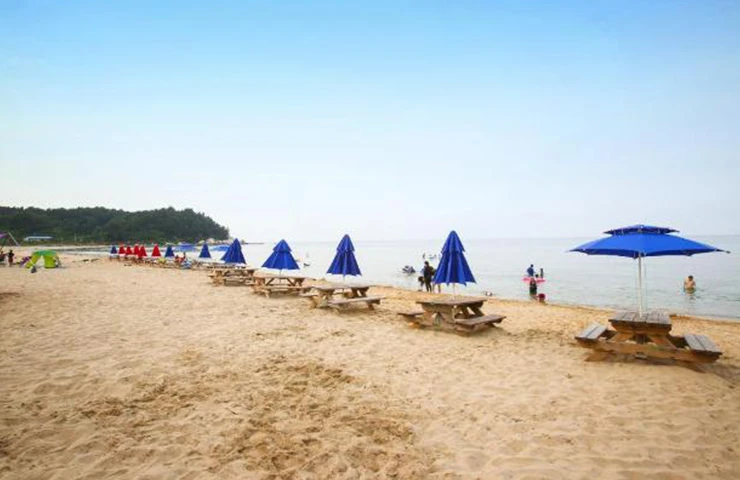 강원도 양양군 현남면 두창시변리 에 있는 해수욕장으로, 앞바다에 대나무가 많아 죽도라고 하는 섬이 있어 붙여진 이름이다.백사장 길이가 2km 정도로, 간이 해수욕장으로는 큰 규모이다. 해변에 울창한 소나무숲이 있으며, 수심이 낮고 경사가 완만하여 가족 단위 피서지로 각광받고 있다. 주변에 크고 작은 바위가 많아 바다낚시를 하기에도 적합하다. 죽도가 해안과 연결되어 있어 출입이 쉬우며, 이곳 죽도봉 정상에서 바라보는 동해 풍경이 아름답기로 유명하다. (자료출처 : 강원관광 - gangwon.to)